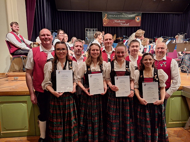Vertreter des Bezirks 5 (ASM) Ludwig Lang zeichnete Mitglieder des Musikvereins Hirschzell aus: